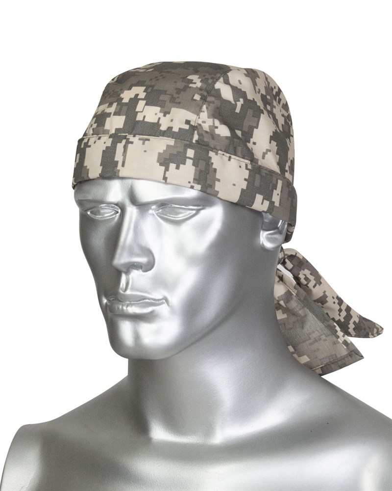 Бандана состоит из двух боковых деталей, средней детали удлиненной в затылочной части, с околышем переходящим в затылочной части в завязки, для регулировки по объёму головы. Срезы затылочной части средней детали обработаны швом в подгибку с закрытым срезом. Ткань верха: «Ти-Си». ГОСТ 32118-2013