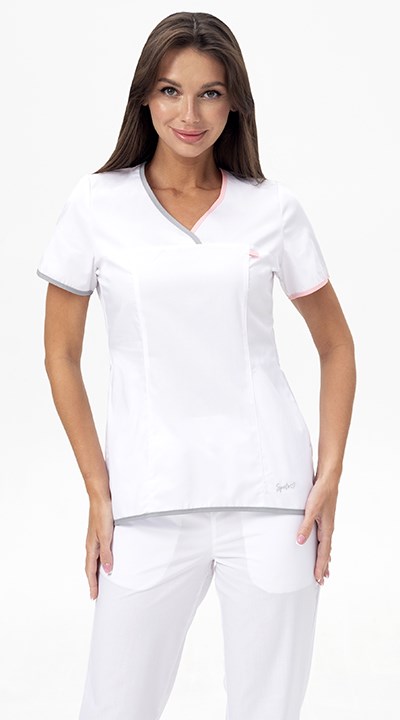 • блуза укорочена спереди и удлинена сзади, обрабатывается окантовкой
