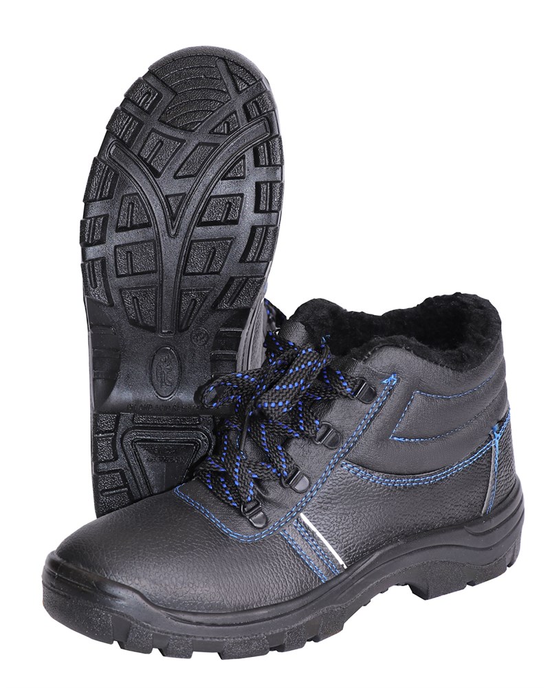 Ботинки из кожи c мягким кантом и глухим клапаном для защиты ног от общих производственных загрязнений в зимний период. Подкладка и вкладная стелька изготовлены из искусственного меха. Шнуровка, проходящая через металлические петли, обеспечивает комфортную адаптивную посадку. Светоотражающие элементы повышают видимость работников в темное время суток и на неосвещенной территории. Однослойная маслобензостойкая полиуретановая подошва литьевого метода крепления имеет вставку в пяточной части подошвы, обладающую амортизационными свойствами и способную гасить ударные нагрузки при ходьбе. Глубина протектора ходового слоя обеспечивает хорошую сцепляемость с поверхностями и препятствует скольжению за счет рельефа протектора.