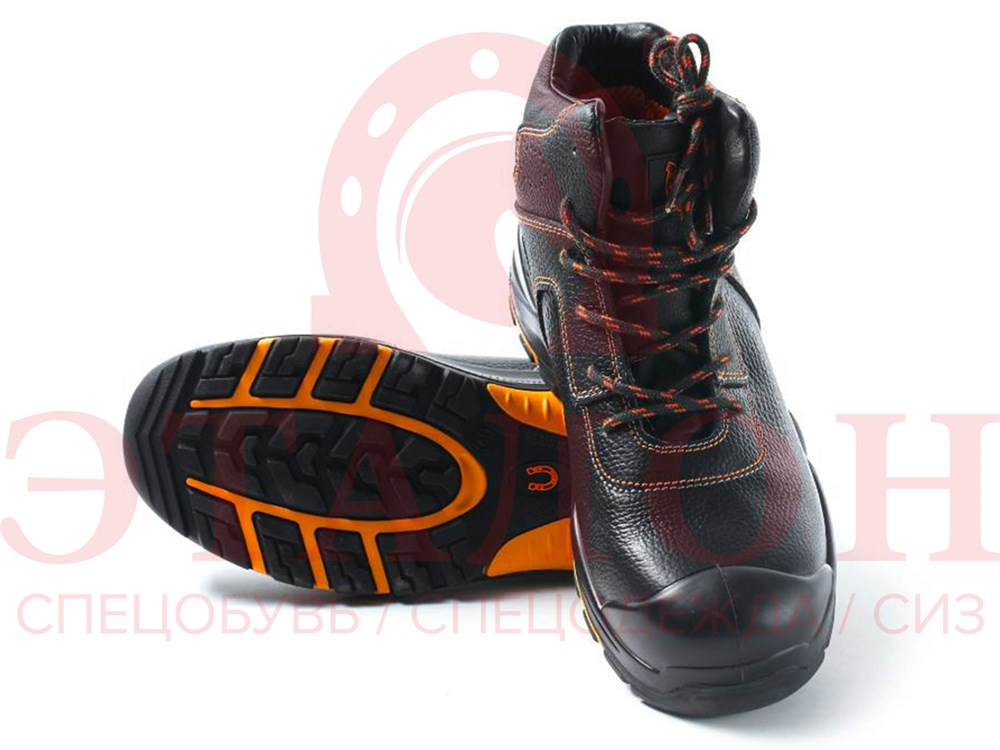 Ботинки изготовлены методом литья к заготовке верха обуви промежуточного слоя подошвы из полиуретана с ходовым слоем из резины на основе нитрильного каучука. Данная модель обеспечивает защиту от нефти, нефтепродуктов, механических воздействий, растворов кислот и щелочей концентрации до 30%, кратковременного (60 с) контакта с поверхностями, нагретыми до температуры 300°С, общих производственных загрязнений, а также для защиты от термических рисков электродуги. Нитки выполнены из негорючих материалов. Верхняя часть обуви выполнена из термоустойчивой и водоотталкивающей кожи (юфти) толщиной от 1,8 до 2,0 мм. Отсутствуют металлические детали (Metalfree). Подошва – двухслойная ПУ-Нитрил. Верхний слой из полиуретана обладает амортизирующими свойствами, гасит ударные нагрузки, а также придает обуви легкость, комфортность и повышенные теплозащитные свойства. Ходовой слой изготовлен из износостойкой, термостойкой (+300°С/ 60 с), морозостойкой резины на основе нитрильного каучука с улучшенным сопротивлением скольжению, стойкостью к деформациям, истиранию. Носочная часть имеет дополнительную защиту в виде полиуретановой накладки, предотвращающей механические повреждения обуви и препятствующей проникновению холода. Для защиты от ударов в носочной части стопы применяется композитный подносок (Мун 200), имеющий конфигурацию, препятствующую надавливанию верхнего края на стопу, и оборудованный прокладкой из полиуретана. Рисунок протектора подошвы обеспечивает хорошую сцепляемость с обледенелыми и замасленными поверхностями (глубина протектора составляет 5,0 мм). Обладает эффектом самоочищения. Утеплитель - мех натуральный (овчина) с высотой ворса 15 мм позволяет использовать обувь в III-IV климатических поясах. Объемная колодка специальной конструкции дает возможность работать целый день, не испытывая дискомфорта и усталости.