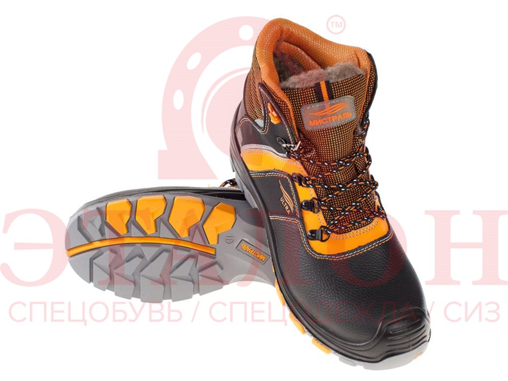 Ботинки "Мистраль ULTRA"- это комфорт, удобство и защищенность при работе в самых экстремальных отраслях. Ботинки подойдут для использования в строительстве, ЖКХ, нефтегазовой, горнодобывающей, химической промышленности, агропромышленном комплексе, металлургии и многих других. Обувь изготовлена методом прямого литья. В зависимости от комплектации и маркировочных обозначений, обувь обеспечивает высокую защиту от механических воздействий (от ударов в носочной части 200 Дж), проколов, защищает от контактов с агрессивной средой (нефть, растворов кислот и щелочной концентрации до 20%, общих производственных загрязнений). Материал верха обуви "Мистраль" - термоустойчивая водоотталкивающая кожа толщиной 1,8 - 2,0 мм. Подошва - двухслойная, с ходовым слоем из износостойкой, термостойкой (+300°С / 60 с), морозостойкой резины на основе нитрильного каучука с улучшенным сопротивлением скольжению, стойкостью к деформациям, истиранию. Для безопасной работы сотрудника в местах с плохим освещением на модели предусмотрены светоотражающие элементы.