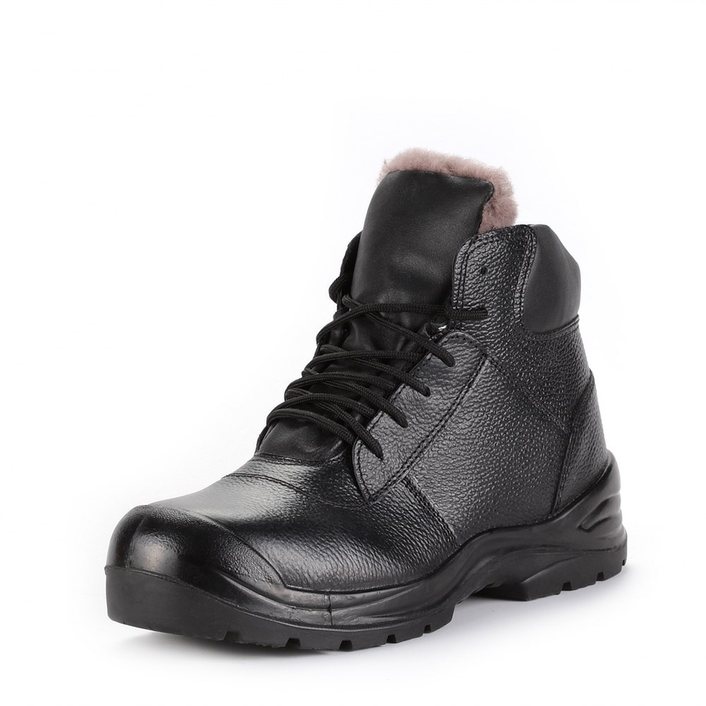 Ботинки зимние рабочие из натуральной кожи с глухим клапаном утеплённые натуральным мехом с поликарбонатным подноском на подошве из полиуретана и резины на основе нитрильного каучука