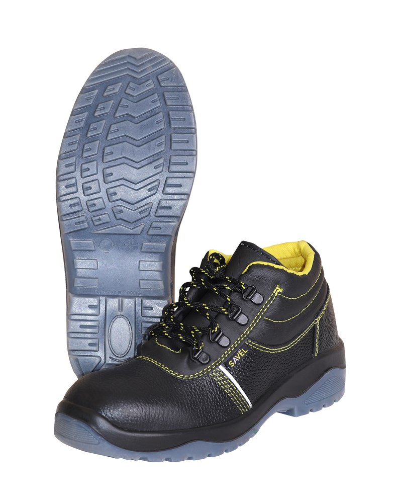 Верх обуви изготовлен из кожи со специальным покрытием для защиты от ОПЗ, МВ, МВО. Застежка на шнурок и металлические петли. Подошва двухслойная ПУ/ТПУ: полиуретан обладает амортизирующими свойствами, гасит ударные нагрузки, а также придает обуви лёгкость, комфорт и повышенные теплозащитные свойства. Термополиуретан обладает гибкостью и прочностью, поэтому обувь с подошвой из этого материала прослужит долго. Литьевой метод крепления подошвы обеспечивает с верхом обуви единое целое, в результате достигается полная герметичность в месте литья. Такой метод крепления является самым прочным и долговечным на сегодняшний день. Подошва сохраняет свои свойства в широком диапазоне температур и обладает стойкостью к воздействию масел, сырой нефти, нефтепродуктов. Мягкий кант деликатно обхватывает щиколотку, обеспечивает комфортное облегание и боковую поддержку, защищает от возможных боковых ударов, препятствует проникновению грязи и пыли внутрь обуви. Подклад в ботинках серии "SAVEL-Профи" жёлтого цвета и выполнен из воздухопроницаемого нетканого материала «типика», который обеспечивает комфортный микроклимат, быстро сохнет и имеет высокую степень устойчивости к истиранию. Верх ботинка имеет контрастные отделочно-скрепляющие строчки жёлтого цвета, как и подкладка. Ботинки оснащены металлоподносками, предохраняющими ноги от удара и имеющими удельное сопротивление деформациям не менее 200 Дж, что регламентировано европейскими стандартами (EN-345). Антипрокольная стелька, расположенная между промежуточным слоем подошвы и штробельной подкладкой, дополнительно защищает стопы ног от проколов, порезов, сильных ударов и прочих производственных травм. Колодка обладает полнотно-размерными характеристиками защитной обуви, предназначенной для эксплуатации в летний и весенне-осенний периоды, даёт возможность работать полный рабочий день с комфортом и без усталости. Обувь предназначена для работы в нефтегазовой, горнодобывающей, энергетической, химической промышленности, на транспорте, в агропромышленном комплексе и сервисных службах.