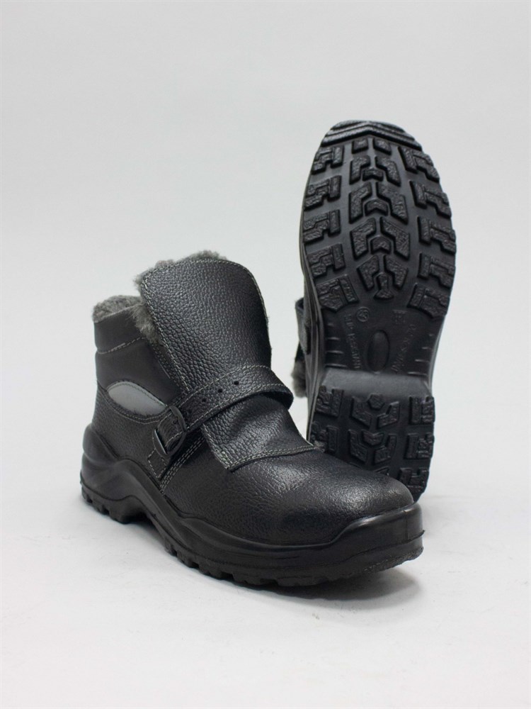 Ботинки специальные для защиты от повышенных температур, искр и брызг расплавленного металла. Рекомендованы для работников связанных с обработкой, резкой и сваркой металла. Оснащены специальным клапаном, защищающим от окалин, искр и брызг металла. Изготовлены из натуральной кожи толщиной 1,8-2мм. Утеплителены искусственным мехом. Подошва двухслойная (ПУ/Нитрил), КЩС 20%, защищает от нефти и нефтепродуктов, с температурным диапазоном эксплуатации до +300С. Металлический подносок 200Дж защищает защищает стопу от ударов в носочной части и падений тяжелых предметов.