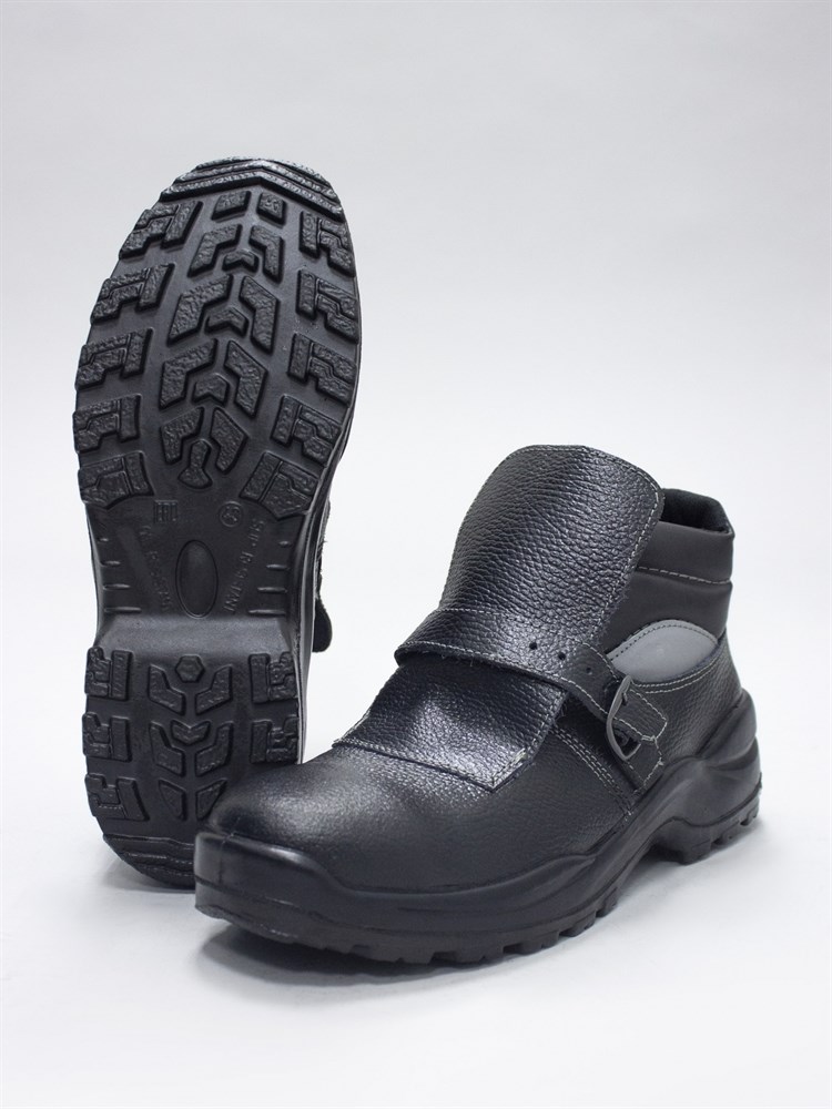 Ботинки специальные для защиты от повышенных температур, искр и брызг расплавленного металла. Рекомендованы для работников связанных с обработкой, резкой и сваркой металла. Оснащены специальным клапаном, защищающим от окалин, искр и брызг металла. Изготовлены из натуральной кожи толщиной 1,8-2мм. Подошва двухслойная (ПУ/Нитрил), КЩС 20%, защищает от нефти и нефтепродуктов, с температурным диапазоном эксплуатации до +300С. Металлический подносок 200Дж защищает защищает стопу от ударов в носочной части и падений тяжелых предметов.