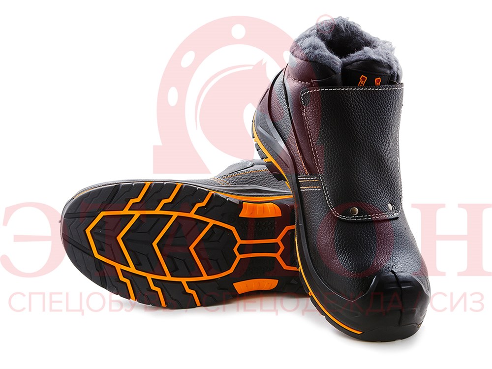 Зимние "Ботинки сварщика" отлично подойдут для использования при сварочных работах. Обувь изготовлена методом прямого литья. Защитный кожаный клапан защищает шнуровку и фиксируется ремешком с пряжкой. Носок из поликарбоната обеспечивает защиту от ударов в носочной части 200 Дж и проколов. Материал верха обуви - термостойкая водоотталкивающая кожа толщиной 1,8 - 2 мм со специальным покрытием, которая защищает от контактов с агрессивной средой: нефть, растворы кислот и щелочной концентрации до 20%, общих производственных загрязнений. Подошва двухслойная (полиуретан и нитрильная резина), устойчивая к контакту с нагретой поверхностью (до 300 градусов Цельсия) с улучшенным сопротивлением к скольжению и деформациям.