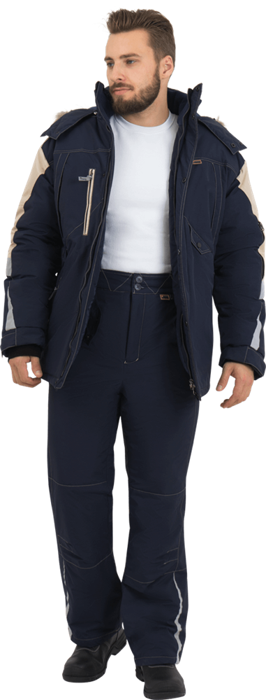 • высокий утеплённый пояс с застёжкой на пуговицы