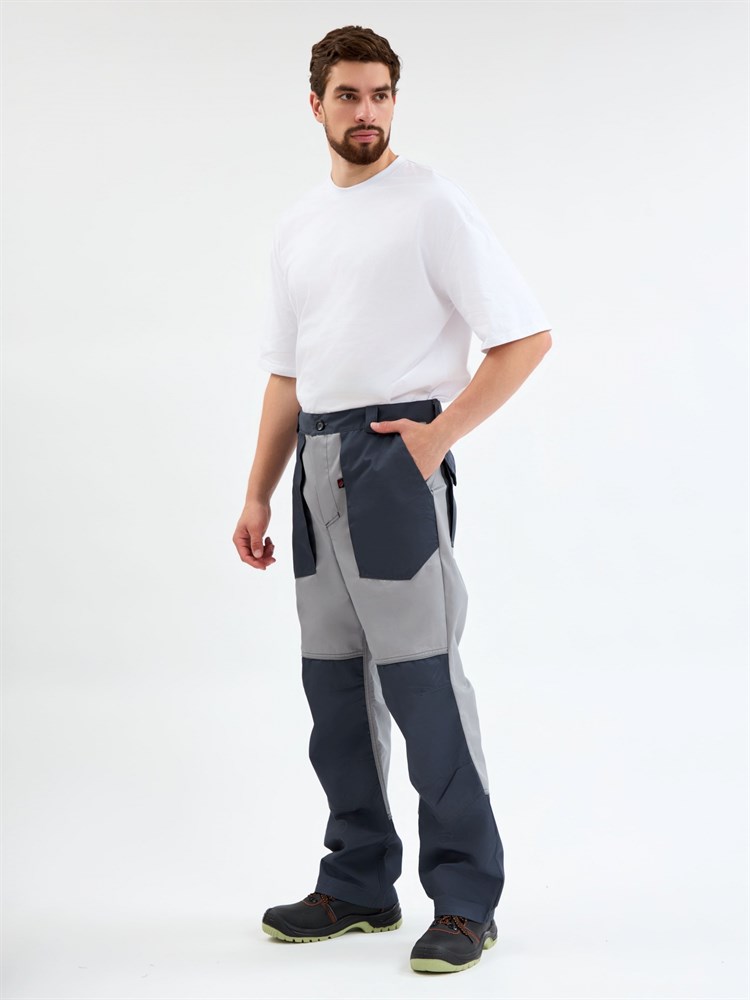 Брюки рабочие мужские «Лидер» созданы для комфортной работы в автомастерских, на складах, производствах. Брюки изготовлены в соответствии с ГОСТ, надежно защищают от общих производственных загрязнений. Благодаря объемным боковым и задним карманам, закрывающимся на липучку, в брюках удобно хранить инструменты, расходники и другое необходимое оборудование. Широкие наколенники с усилением и вытачками обеспечивают комфортную работу в течение длительного периода времени, защищают спецодежду от износа. Брюки рабочие оснащены светоотражающим кантом, подходят для работы в темное время суток. Мужские брюки долговечны, быстро очищаются, т.к. изготовлены из плотного материала с влагоотталкивающей пропиткой.