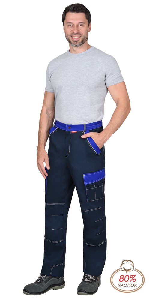 Брюки СИРИУС-КАРАТ-РОСС темно-синие с васильковым, 80% х/б, пл. 260 г/кв.м