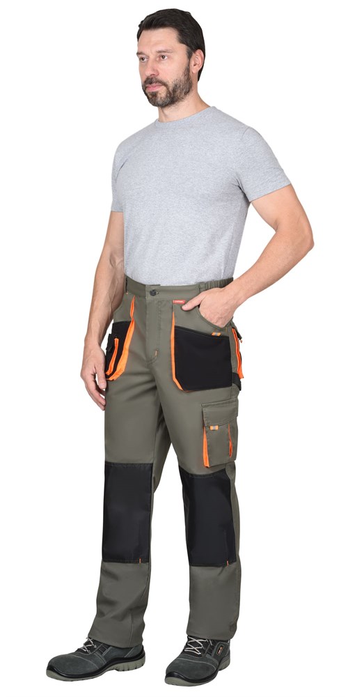 Брюки СИРИУС-МАНХЕТТЕН оливковый с оранжевым и чер. тк. мех. стрейч пл 260 г/кв.м