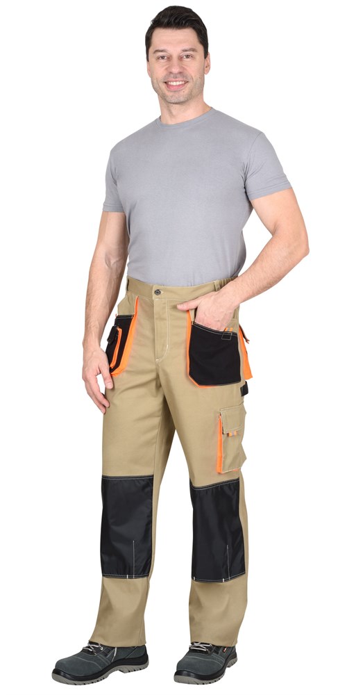 Брюки СИРИУС-МАНХЕТТЕН песочный с оранж. и черным тк. мех. стрейч пл. 250г/кв.м