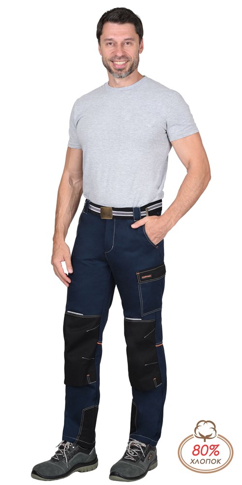 Брюки СИРИУС-ШАТЛ-РОСС с ремнем синие с черным, 80% х/б, пл. 260 г/кв.м
