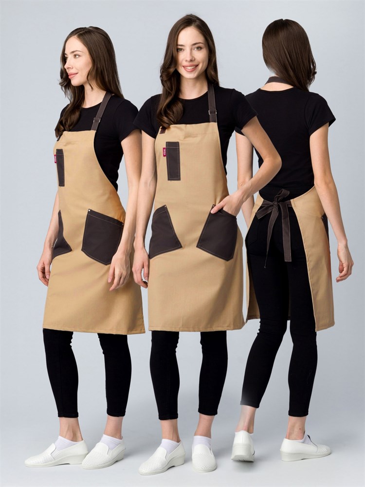 Фартук с грудкой универсальный Крафт (тк.Форвард,210), бежевый/коричневый (024)