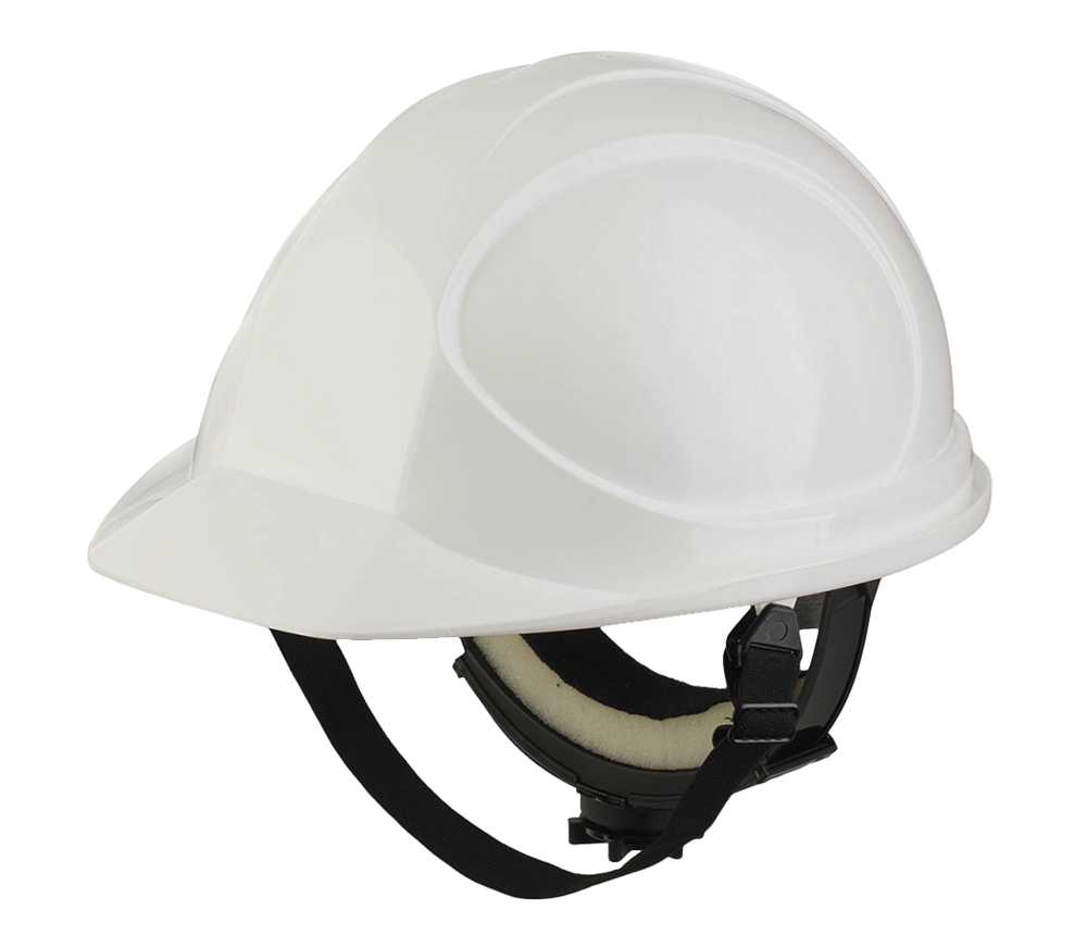 Защитная каска с текстильным оголовьем и ленточным регулятором размера для защиты работников от падающих предметов и боковых ударов, а также для обеспечения дополнительной защиты от других механических воздействий, влаги и электрического тока напряжением до 440 В.