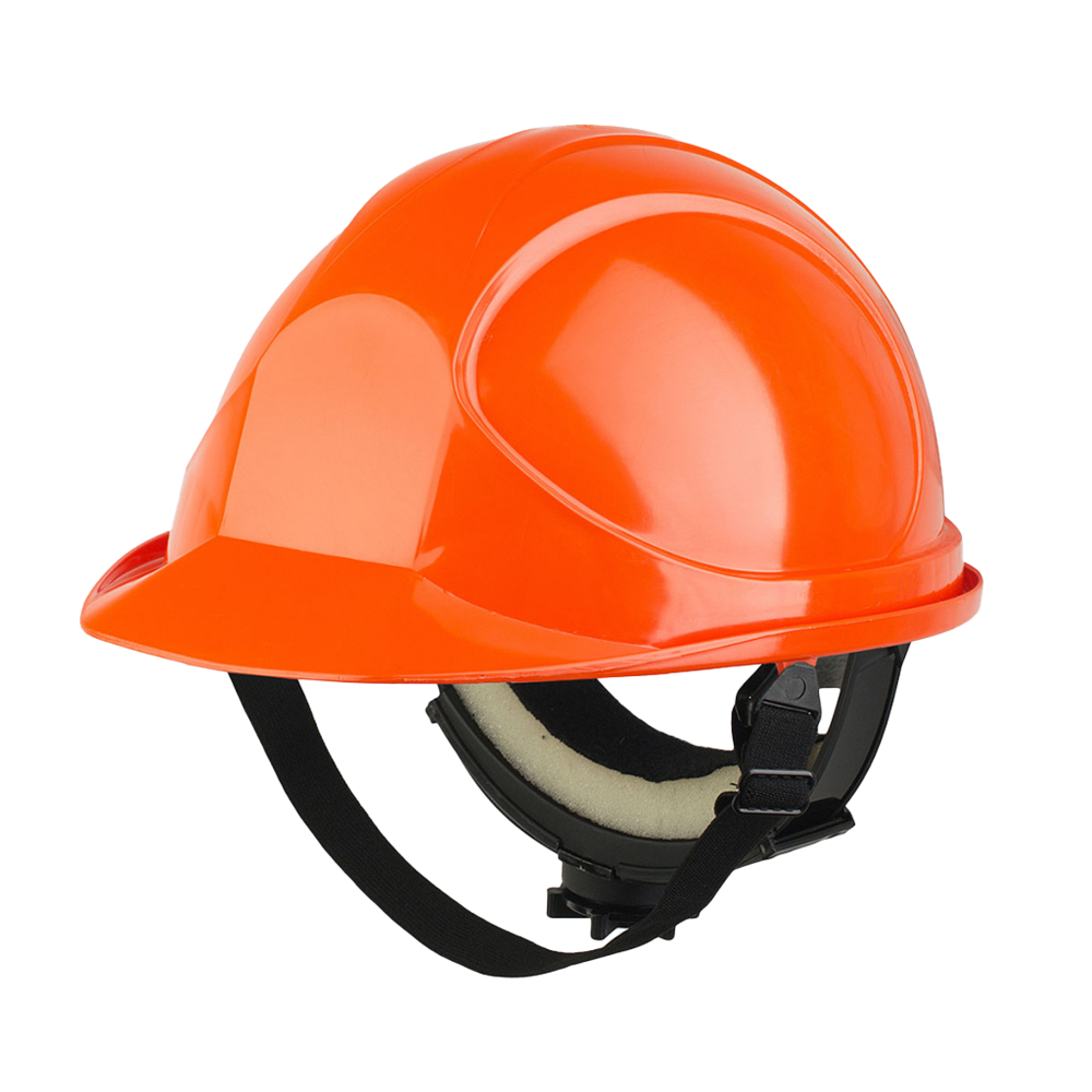 Защитная каска с текстильным оголовьем и ленточным регулятором размера для защиты работников от падающих предметов и боковых ударов, а также для обеспечения дополнительной защиты от других механических воздействий, влаги и электрического тока напряжением до 440 В.