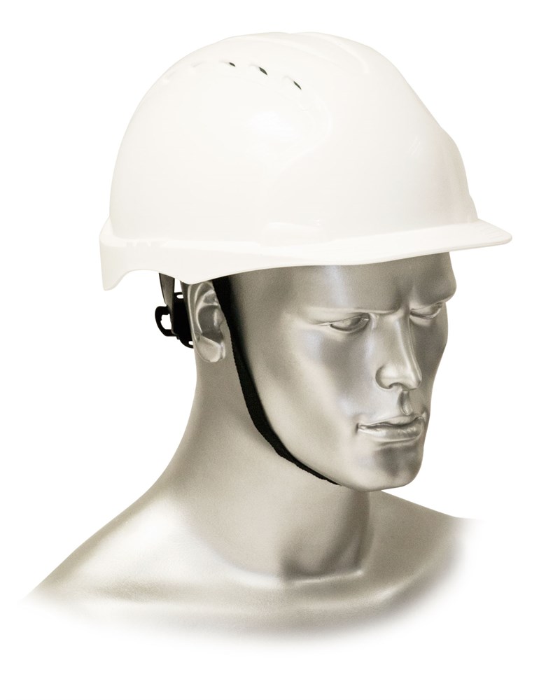 Каска выполнена из ударопрочного полипропилена, с удобным храповиком, регулирующим размер, а также с регулируемой глубиной посадки каски (3 положения). Корпус каски и внутренняя оснастка изготавливается из нетоксичных материала и устойчив к действию дезинфицирующих средств.