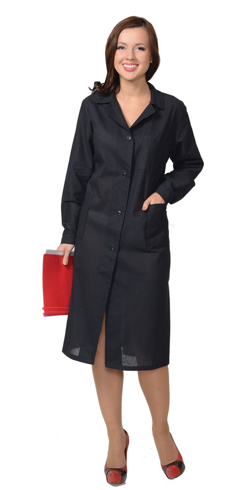 Тк. бязь, 100% х/б. Отложн. воротник, застёжка на пуговицы, два кармана. Манжеты рукавов на пуговице. По талии спинки - хлястик. ГОСТ 12.4131-83.