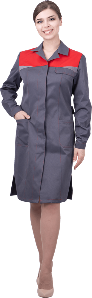 Халат КМ-10 ЛЮКС летний, серый-красный, женский