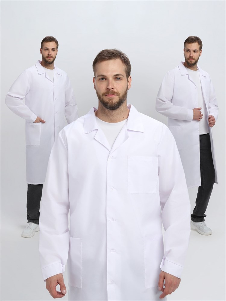 Халат рабочий мужской «Классика» предназначен для работы на производствах, в медицинских и образовательных учреждениях. Халат белый рабочий изготовлен в соответствии с ГОСТ из высококачественных материалов для комфортной деятельности в разных температурных режимах. Плотная ткань с водоотталкивающей пропиткой надежно защищает от загрязнений разного типа, отличается износостойкостью, длительным периодом эксплуатации, не просвечивает. Халат с длинным рукавом и длиной ниже колена застегивается на пуговицы, очень удобен в носке. Рабочая одежда регулируется по талии с помощью вшивного пояса на кнопке. В объемных боковых карманах удобно хранить записи и мелочи. Двойной нагрудный карман отличается повышенной прочностью и создан для размещения острых предметов.