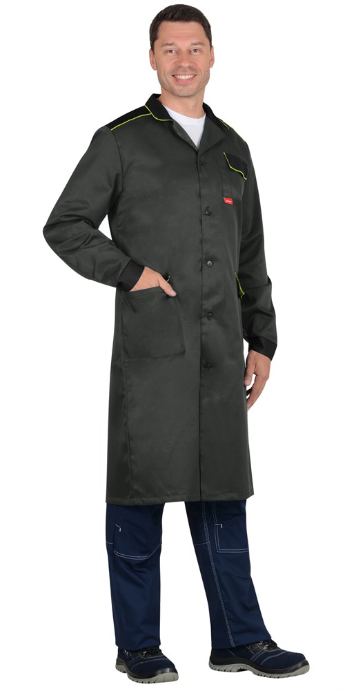 Халат СИРИУС-ТЕХНИК мужской, серый с черным и лимонной отделкой