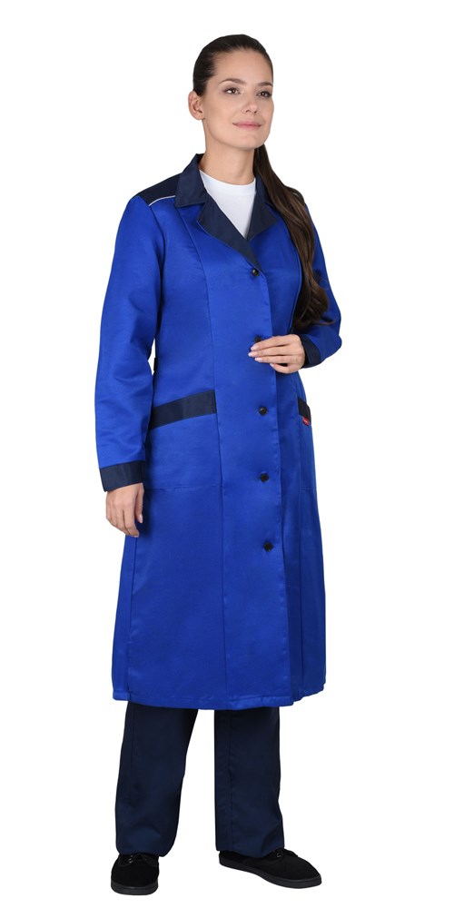 Воротник английский, застёжка на пуговицы, карманы. Рукава с манжетами. СО кант по кокеткам. ГОСТ 12.4.131-83.