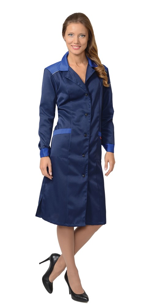 Воротник английский, застёжка на пуговицы, карманы. Рукава с манжетами. СО кант по кокеткам. ГОСТ 12.4.131-83.