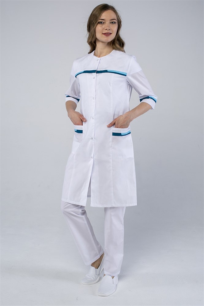 Халат женский Лотос (тк.ТиСи), белый/голубой