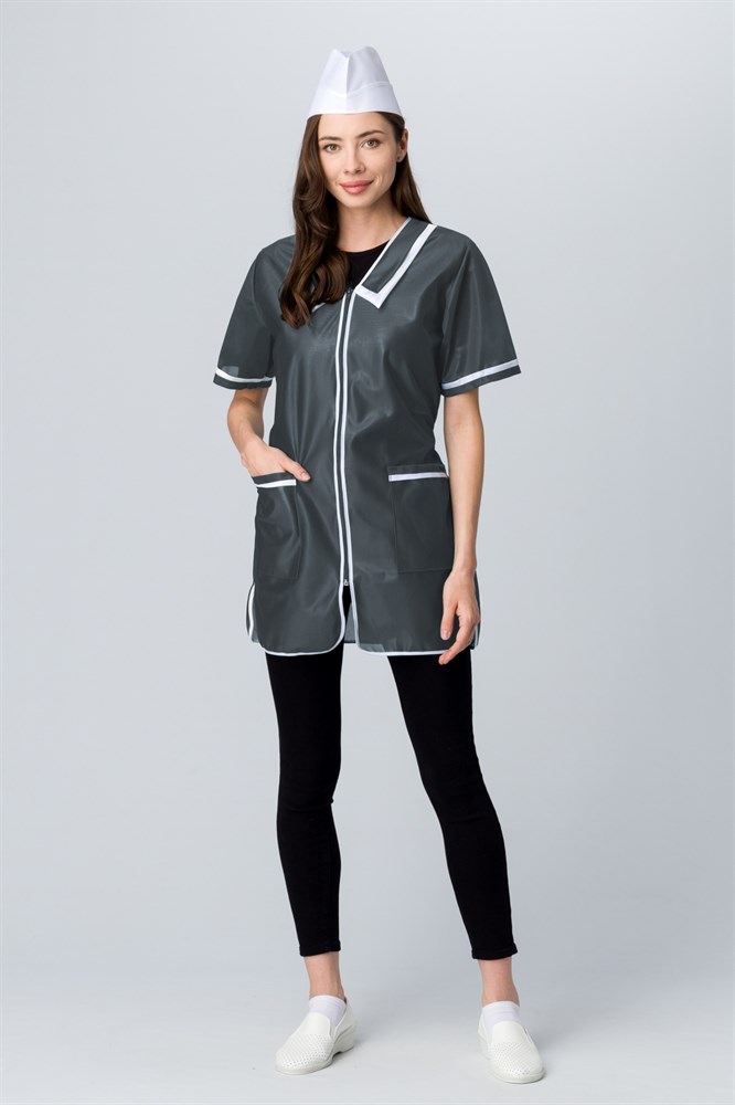 Халат женский на молнии короткий рукав (тк.Нейлон), серый