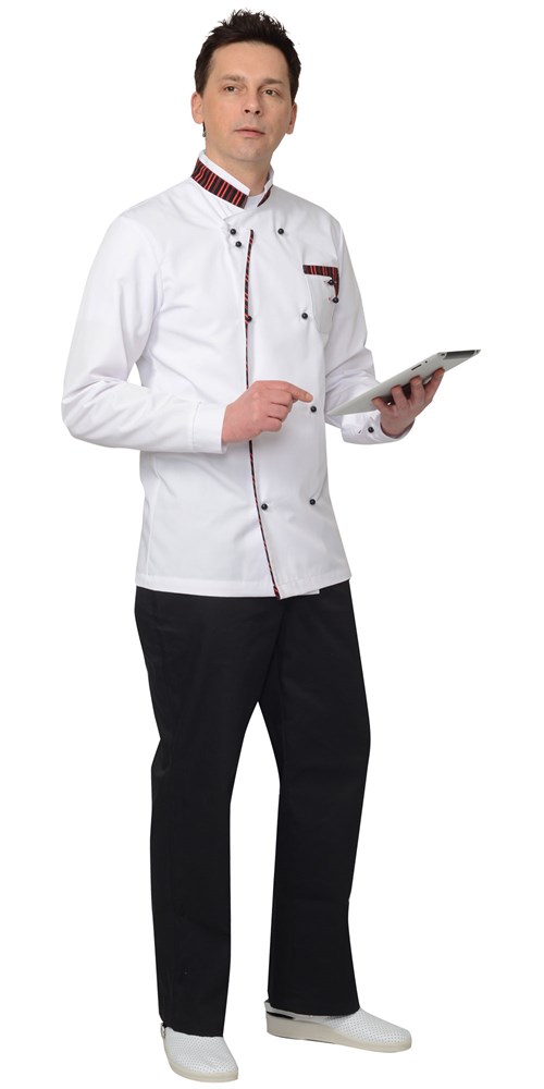 Китель СИРИУС-МИШЛЕН мужской белый с отделкой черно-красная полоска