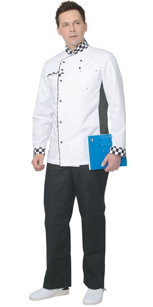 Китель СИРИУС-ШЕФ мужской белый с отделкой черно-белая клетка