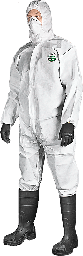 Комбинезон, изготовленный из полипропиленового четырехслойного SMMS материала, обеспечивает повышенную защиту.
