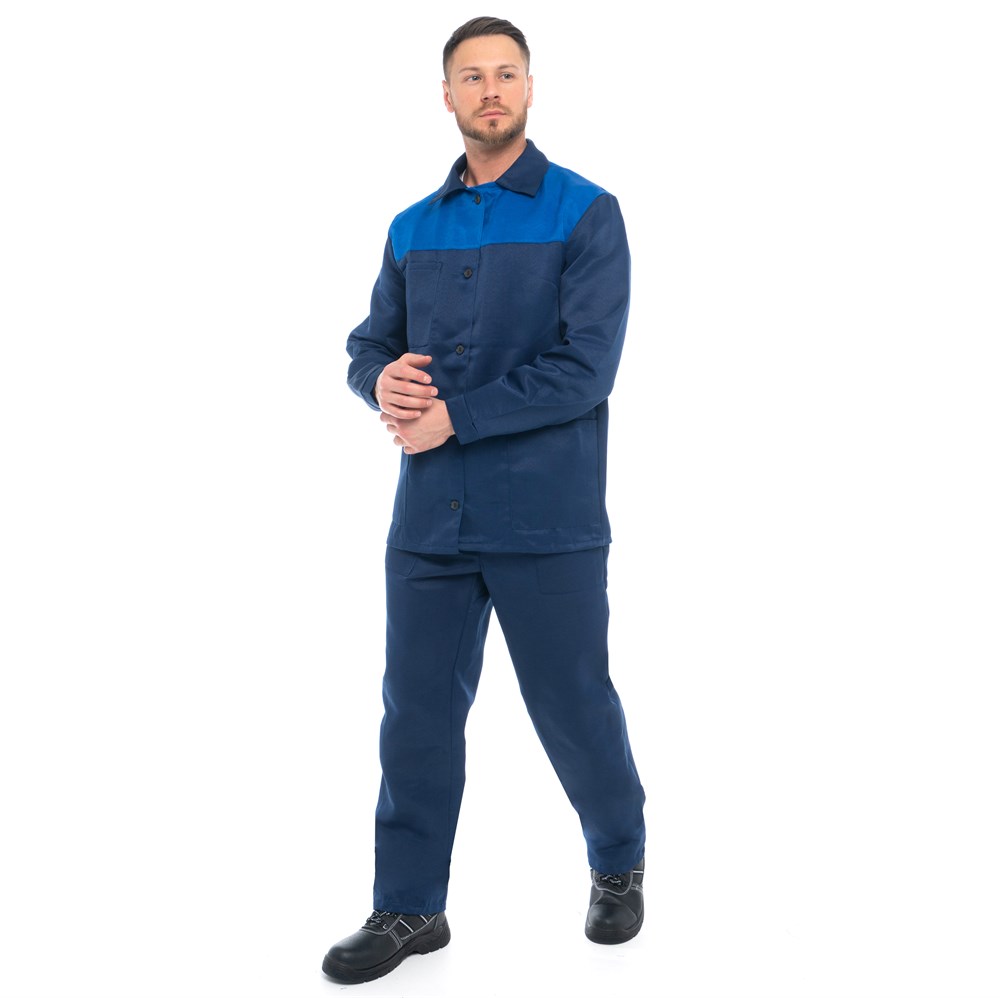 Костюм "АСКЕТ" изготовлен в соответствии с ГОСТ и включает 2 предмета: куртка, брюки. Модель куртки- удлиненная с застежкой на пуговицы. На изделии расположен нагрудный накладной карман с клапаном и нижние накладные карманы. На брюках накладные карманы на передних половинках. Гульфик застегивается на пуговицы.