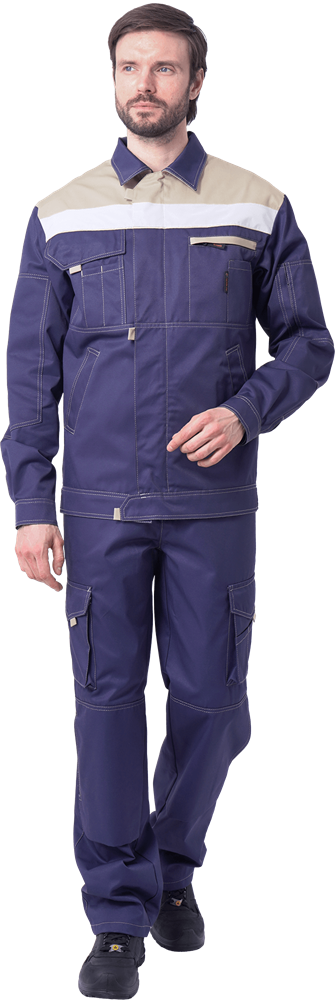 Костюм ДОКЕР летний, т/синий-бежевый (Куртка+полукомбинезон)
