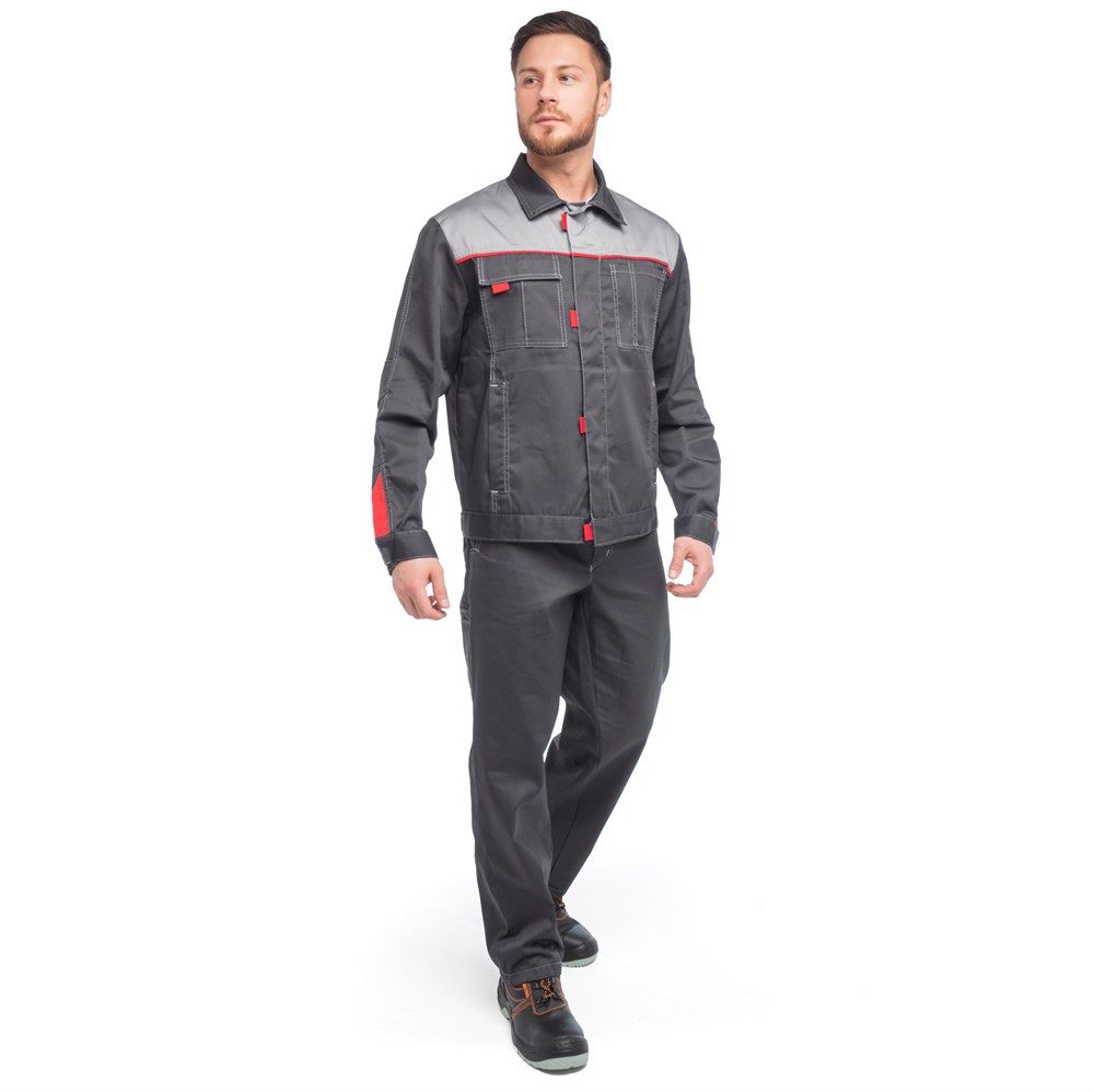 Костюм "Фаворит-1" изготовлен в соответствии с ГОСТ и включает 2 предмета: куртка/брюки. На изделии расположены нагрудный накладной карман с делением под ручку, накладной карман с полу-объемом с клапаном, застегивающимся на липучку и нижние карманы в рельефе. Усилительные накладки в области локтей создают дополнительную защиту. Модель куртки - укороченная на поясе, с регулировкой низа куртки хлястиками на липучке. Брюки оснащены многофункциональными карманами для хранения мелочей. Гульфик застегивается на молнию. Брюки фиксируются на посадке с помощью пояса со шлевками, с регулировкой на задней части пояса хлястиками на липучке. В костюме используются декоративные элементы контрастного цвета, благодаря которым сотрудник заметен и в светлое время суток.