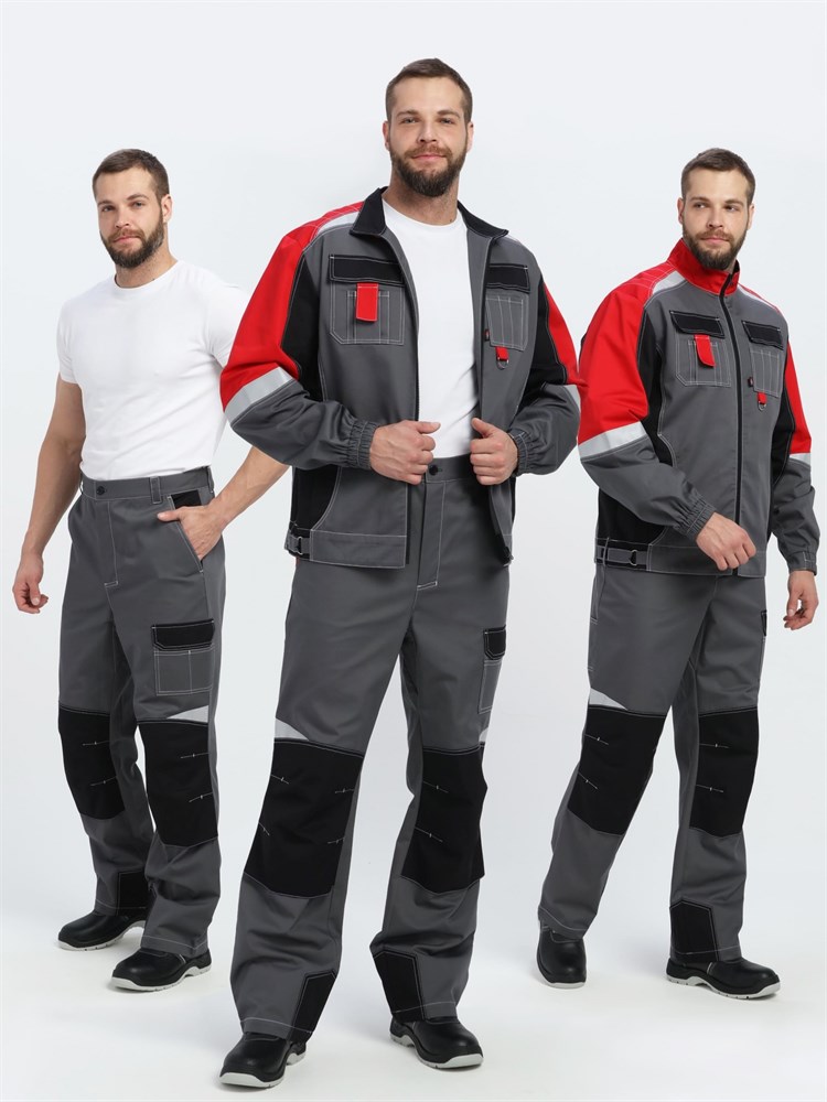Костюм Вектрон-1 (тк.Смесовая МВО,240) брюки, серый/черный/красный