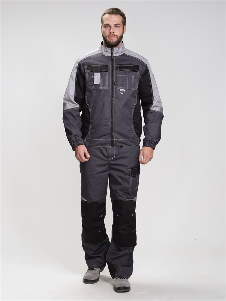 Костюм мужской рабочий «Вектрон» изготовлен в соответствии с ГОСТ и включает в себя два предмета: рабочая куртка мужская + брюки рабочие. Укороченная куртка удобно застегивается на молнию, оснащена поясом с регулировкой по ширине. Для безопасной работы в местах с плохим освещением предусмотрены светоотражающие полосы. Благодаря яркой контрастной отделке рабочая форма заметна издалека даже днем. Боковые и нагрудные карманы с клапаном на липучке предназначены для записей и мелочей. Рабочие брюки усилены дополнительной тканью в районе коленей и шагового шва снизу. В многозональных карманах разного типа и размера удобно хранить инструменты и расходники. Комфортную работу в неудобных позах обеспечивает анатомический крой коленей и локтей, а также возможность размещения ЭВА-вкладышей в карманы-наколенники.