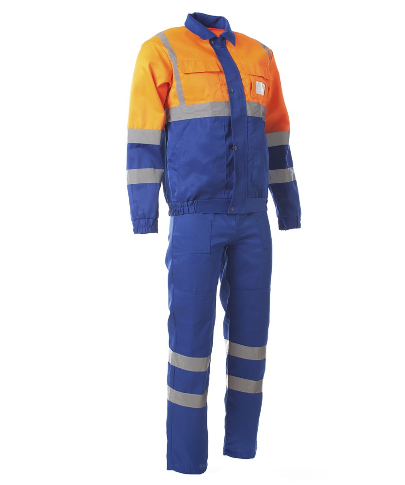 Костюм "МЕТЕО" изготовлен в соответствии с ГОСТ и включает в себя два предмета: куртка / полукомбинезон. Куртка прямого силуэта, короткая. Центральная застежка - на молнию и кнопки. На изделии расположены накладные карманы с контактной лентой-липучкой. На левой стороне куртки нагрудный карман на кнопках с окном для бейджа. Низ куртки утянут лентой. Светоотражающие полосы по кокетке. Гульфик на полукомбинезоне закрывается на молнию. Застёжка в боковом шве на кнопки. На полукомбинезоне расположены различные многофункциональные карманы для хранения мелочей. Для безопасной работы сотрудника в местах с плохим освещением на костюме «МЕТЕО» предусмотрены светоотражающие полосы шириной 50 мм по низу полукомбинезона.