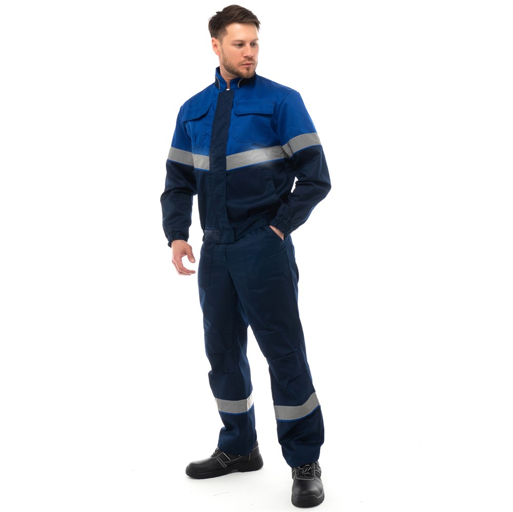 Костюм "ОРИОН" изготовлен в соответствии с ГОСТ и включает 2 предмета: куртка, полукомбинезон. На изделии расположены фигурные накладные карманы с клапанами на липучку и нижние накладные карманы с косым входом. Модель куртки-укороченная на поясе с частичной стяжкой на эластичную резинкуи воротником-стойкой. Полукомбинезон оснащен различными многофункциональными карманами для хранения мелочей. Эластичная резинка по талии спинки фиксирует посадку. Гульфик застегивается на молнию. В правом боковом шве застежка на пуговицы. Бретели на пластиковых застежках (фастексах), регулируются по длине за счет эластичной резинки. Для безопасной работы сотрудника в местах с плохим освещением на костюме «ОРИОН» предусмотрена световозвращающая лента шириной 50 мм и СВ кант.