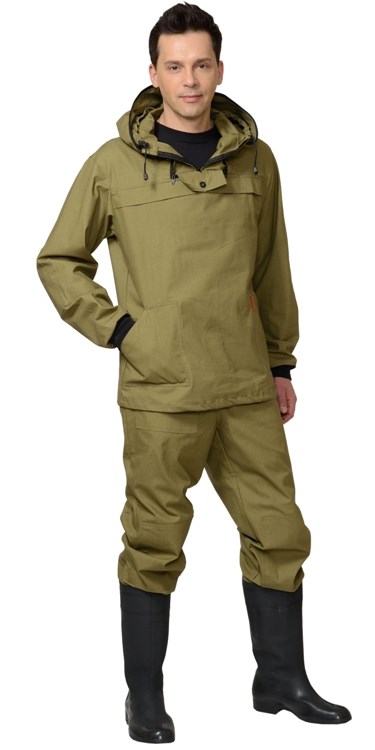 Куртка с притачным капюшоном с противомоскитной сеткой и накладным нагрудным карманом, в который при необходимости можно спрятать противомоскитную сетку. Рукава с трикотажной манжетой, ширина куртки внизу регулируется.Брюки с цельнокроеным поясом, стянутым эластичной лентой, с 4-мя шлёвками, с наколенниками, с накладным карманом с клапаном, застёгивающимся на ленту "контакт", низ брюк с трикотажными манжетами.