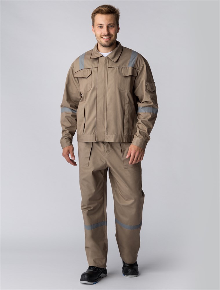 Костюм Респект (тк.Саржа,250) брюки, бежевый/коричневый