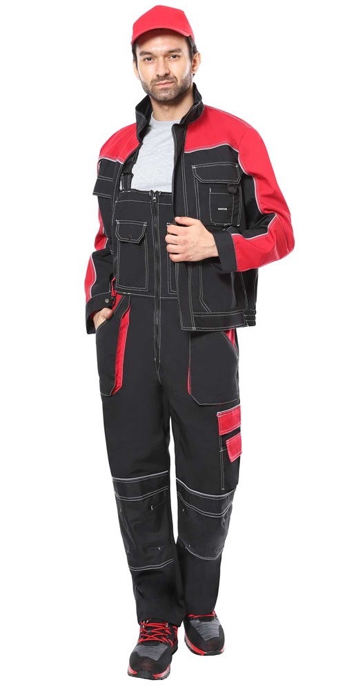Костюм СИРИУС-АГАТ куртка, п/к черный с красным пл. 260 г/кв.м. ВО отделка