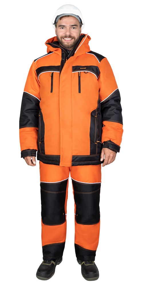 Костюм зимний 3 класса защиты предназначен для IV климатического пояса, состоит из куртки и брюк. В костюме предусмотрен СВ-кант для обеспечения сигнальной видимости.