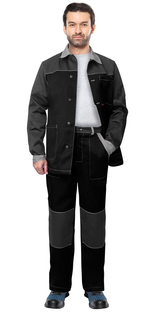 Костюм СИРИУС-АСПЕКТ куртка длин., брюки, черный с темно-серым и светло-серой отделкой