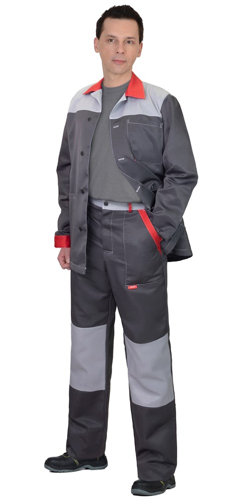 Костюм СИРИУС-АСПЕКТ куртка длин., брюки, темно-серый со светло-серым и красной отделкой