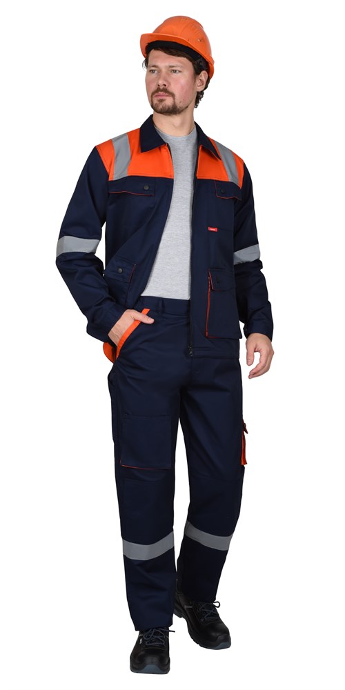 Костюм СИРИУС-БИЛДЕР куртка, брюки темно-синий с оранжевым