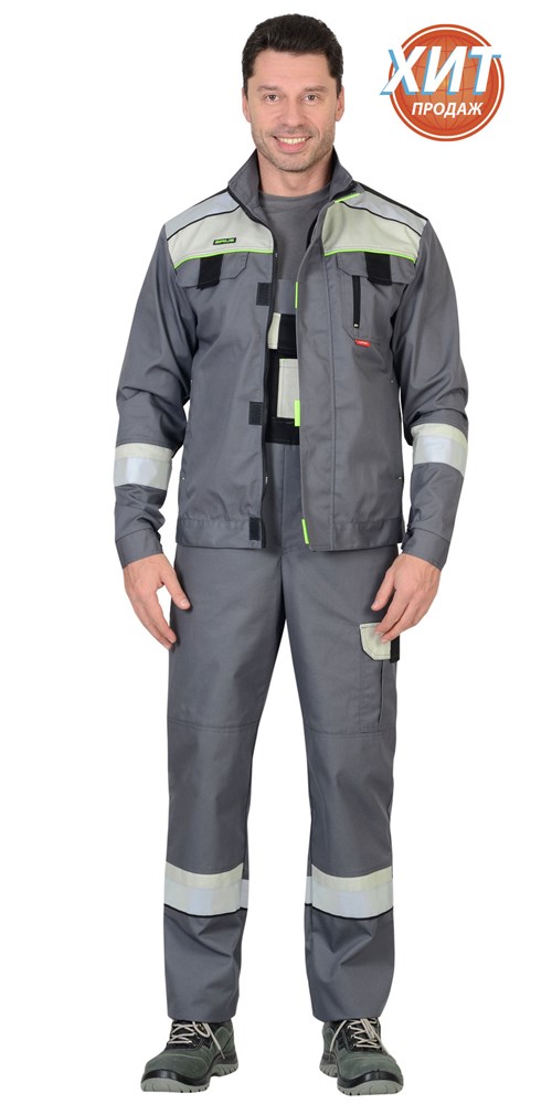 Костюм СИРИУС-БОСТОН куртка, п/к серый с молочным и черным
