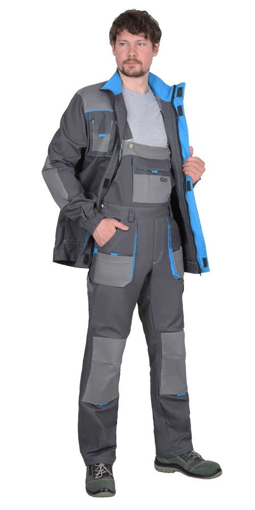 Костюм СИРИУС-ДВИН куртка, п/к т.серый со ср.серым и голубой отделкой пл. 275 г/кв.м