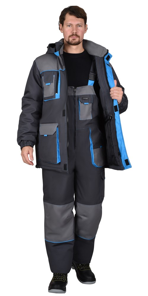 Костюм СИРИУС-ДВИН зимний, куртка удл., п/к т.серый со ср.серым и голубой отделкой