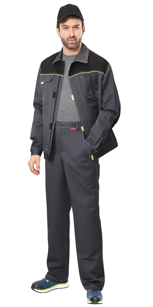 Костюм СИРИУС-ФАВОРИТ куртка, брюки т.серый с черным и лимонным кантом