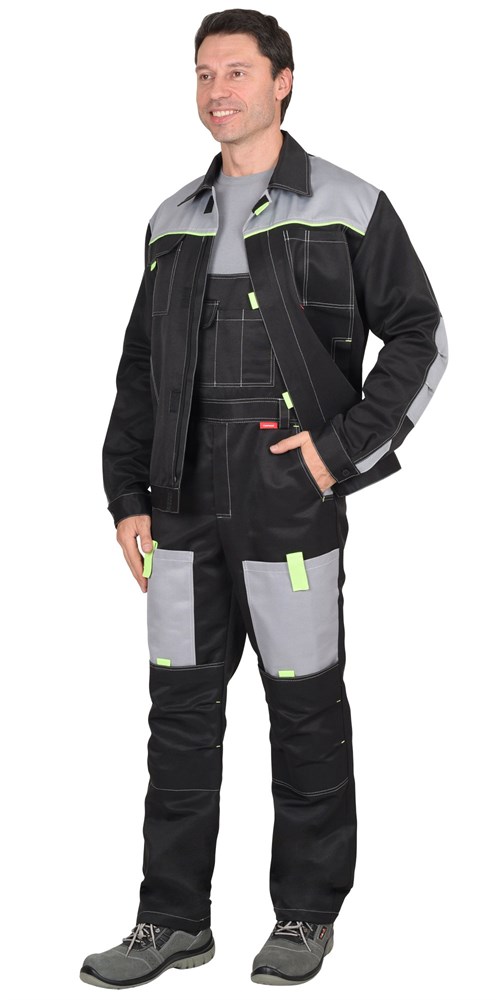 Костюм состоит из куртки и полукомбинезона. Куртка, укороченная с центральной потайной застежкой на молнию, застежкой борта и пояса на липучку. Верхние карманы с клапанами и хлястиком, застегивающимися на липучку. Боковые карманы в вертикальных швах. Пояс регулируется хлястиком на липучке. Воротник отложной. Вертикальные складки спинки увеличивают свободу движения. Контрастная отстрочка швов придает костюму оригинальность. Полукомбинезон, комбинированный с усиленными накладками в области колен, объем по линии талии регулируется тесьмой.Рекомендуется для рабочих специальностей. Современная практичная в эксплуатации и очень экономичная модель летней спецодежды. ГОСТ 12.4.280-2014
